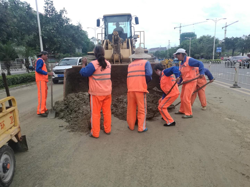 7月23日上午,集團(tuán)公司組織人員,并派出鏟車、清地車、高壓沖洗車等加強(qiáng)作業(yè),對(duì)臺(tái)風(fēng)過(guò)后的主次干道堆積泥沙進(jìn)行大沖洗,對(duì)散落垃圾、斷裂樹枝樹葉進(jìn)行全面普掃清運(yùn),對(duì)倒伏樹木及時(shí)扶正,加強(qiáng)垃圾清運(yùn),確保道路暢通整潔。截止發(fā)稿,集團(tuán)公司共出動(dòng)機(jī)械化清掃車輛28車次,各類垃圾壓縮車輛271車次,清運(yùn)垃圾851噸。