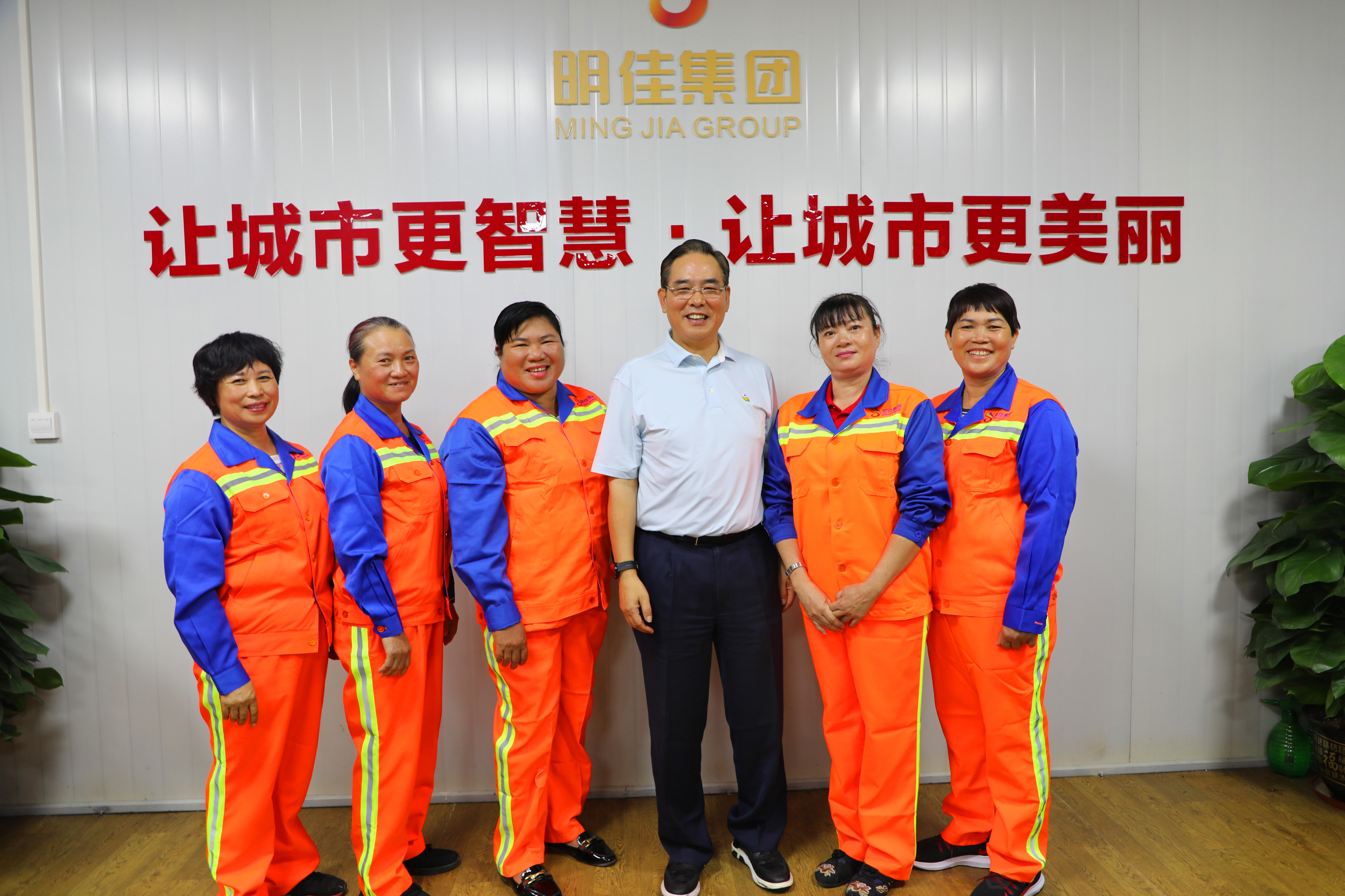 他肯定了明佳集團(tuán)工會(huì)取得的成績,并親切慰問了現(xiàn)場的環(huán)衛(wèi)工人,與他們一一握手,并合影留念。