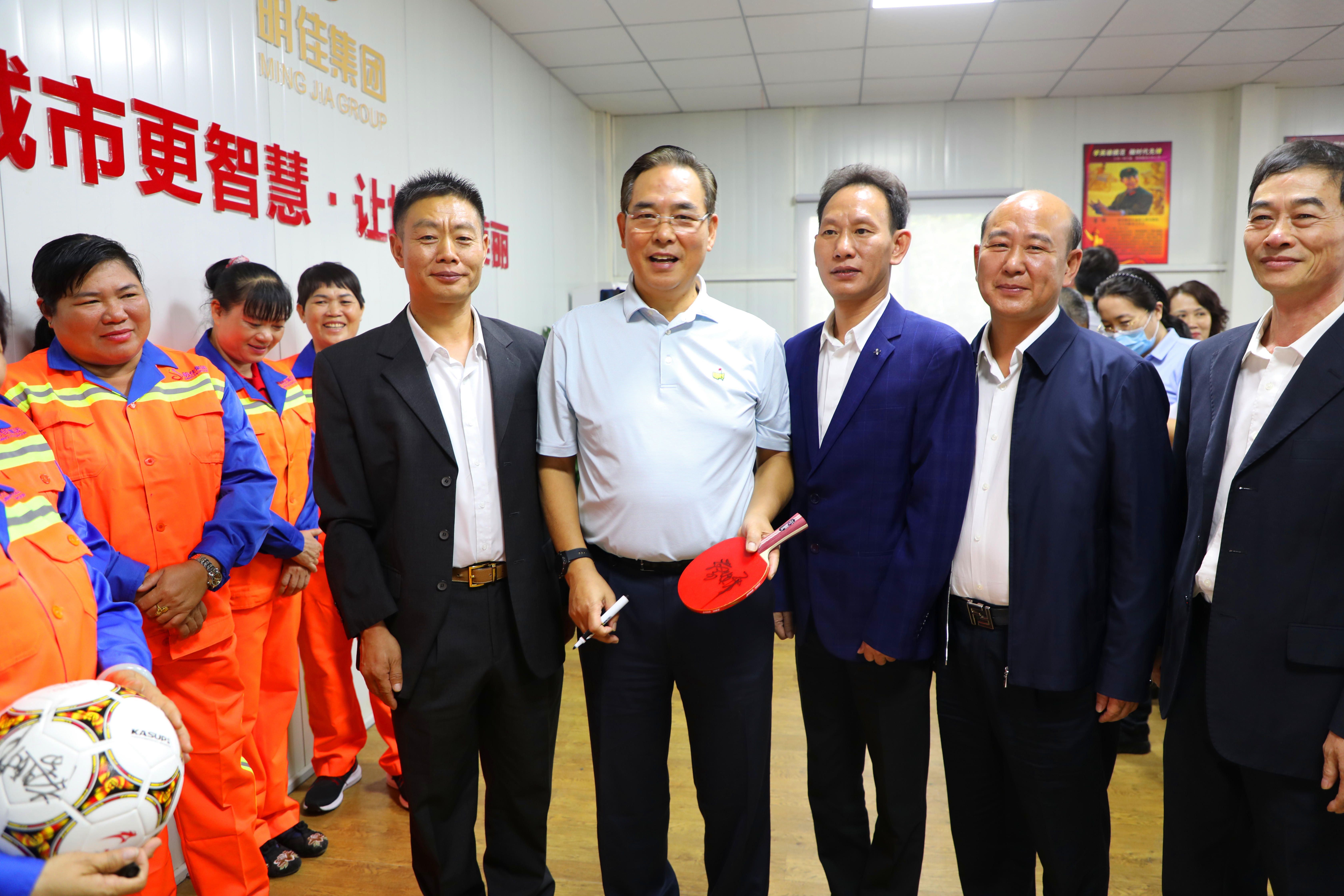 座談會(huì)結(jié)束后,明佳集團(tuán)一些職工表示非常喜愛乒乓球及足球運(yùn)動(dòng),一直都是蔡副主席的粉絲,希望獲得蔡振華副主席的親筆簽名。蔡副主席非常親切地為他們簽名,并與之合影留念。