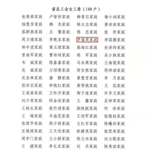 明佳集團吉陽區(qū)域環(huán)衛(wèi)四隊隊長羅福英家庭于2021年10月22日被海南省婦聯(lián)推選為2021年海南省“綠色家庭”示范戶。