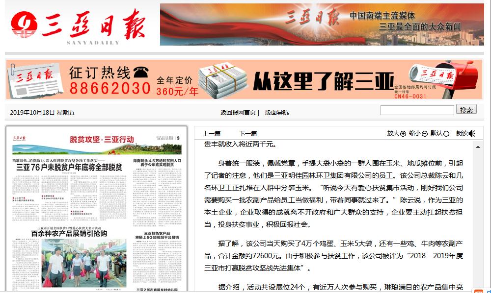 三亞日?qǐng)?bào):三亞市開展全國(guó)扶貧日暨愛心扶貧大集市活動(dòng) 百余種農(nóng)產(chǎn)品展銷引搶購
